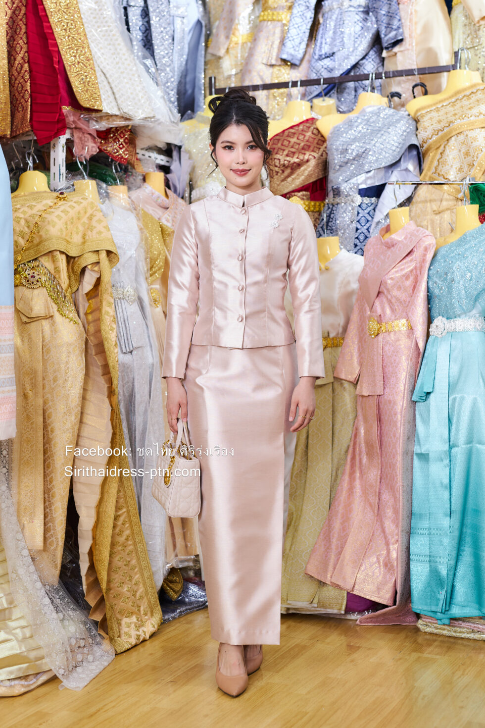 รีดกาวทั้งตัว ทรงสวย สามารถใช้ได้ใน พระราชพิธี หรือใส่ไปวัด และงานบุญต่างเป็นเสื้อรีดกาวกระดุมหน้าพร้อมผ้าถุง ลูกค้าสามารถเปลี่ยนลายผ้าถุงได้ มีทุกขนาด