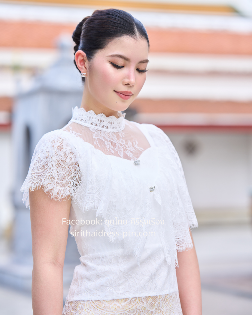 ชุดไปงานบวช ไปวัดทำบุญ เสื้อลูกไม้